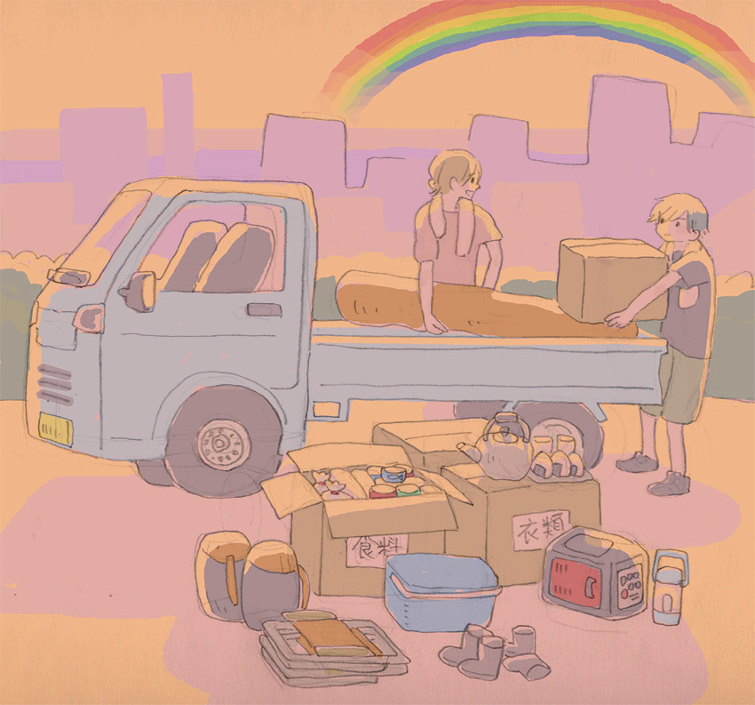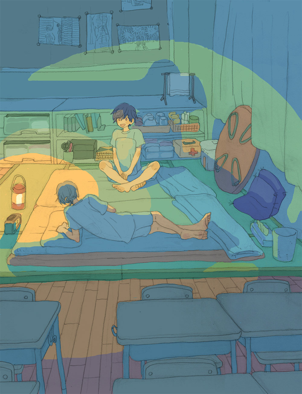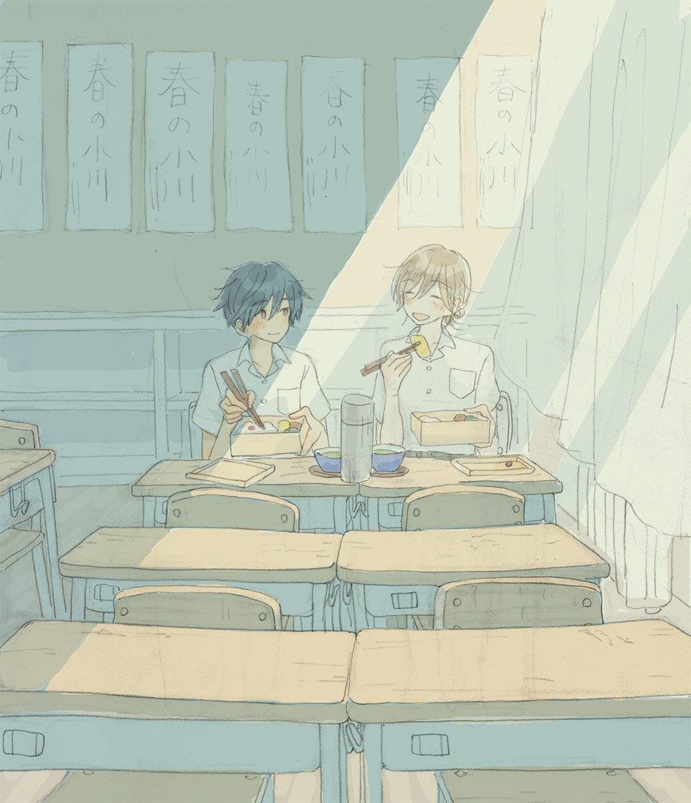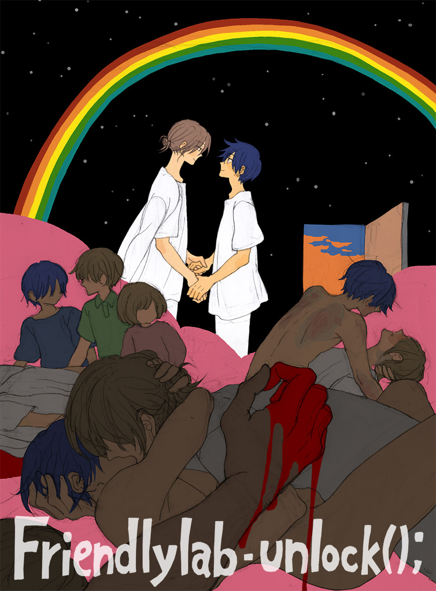 エンド6のあと、ニシくんとヒガシくんが学校で暮らしてる絵です。