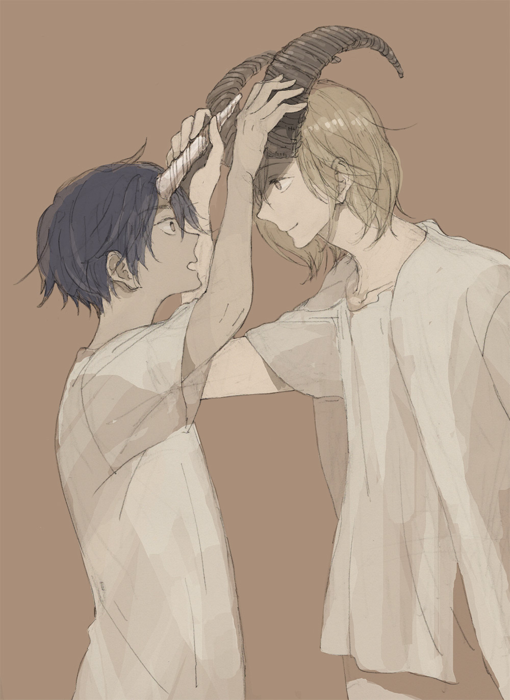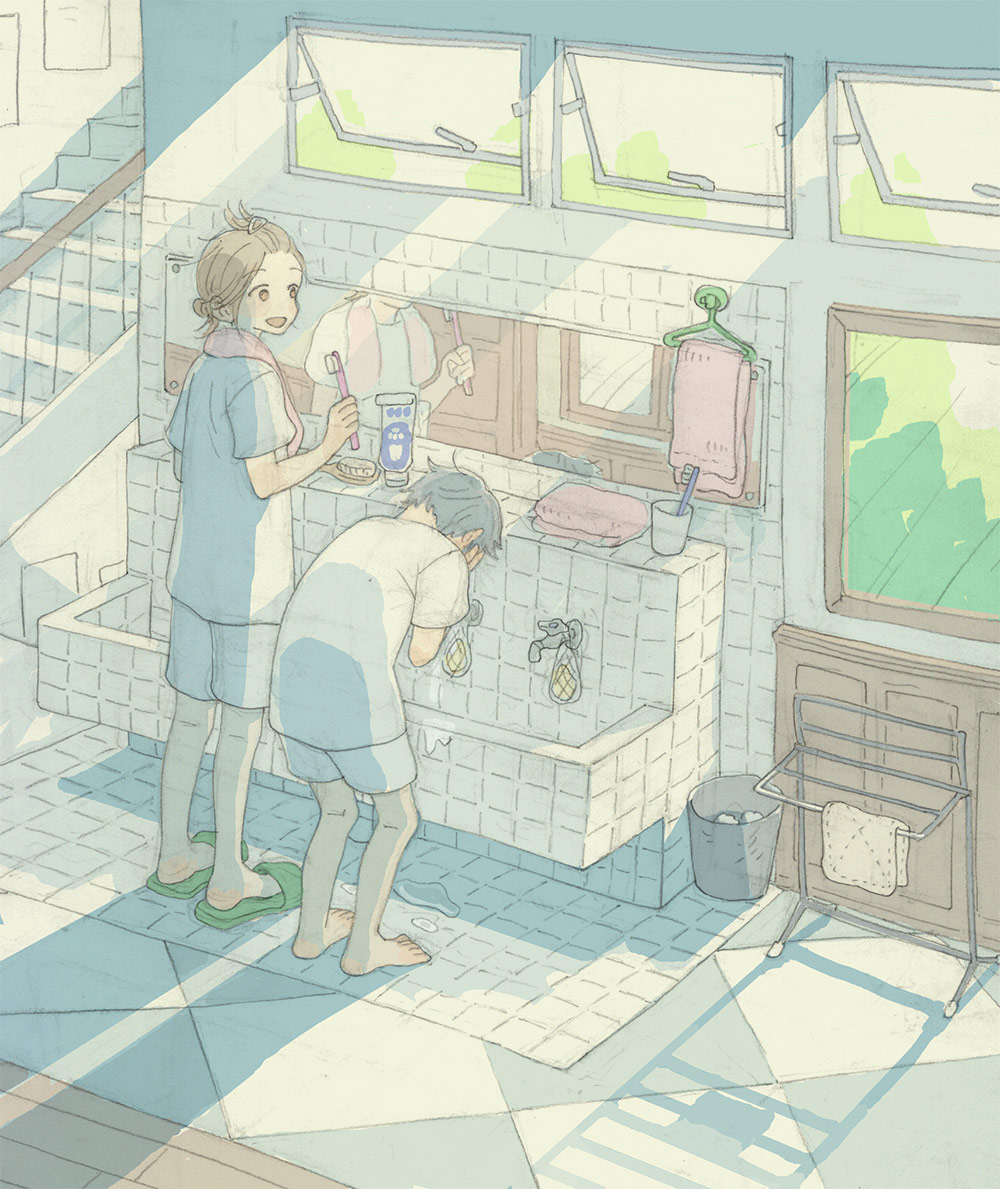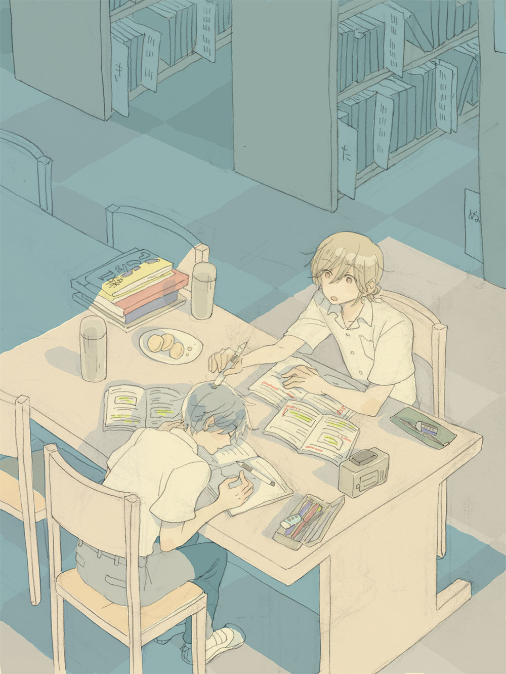 エンド6のあと、ニシくんとヒガシくんが学校で暮らしてる絵です。