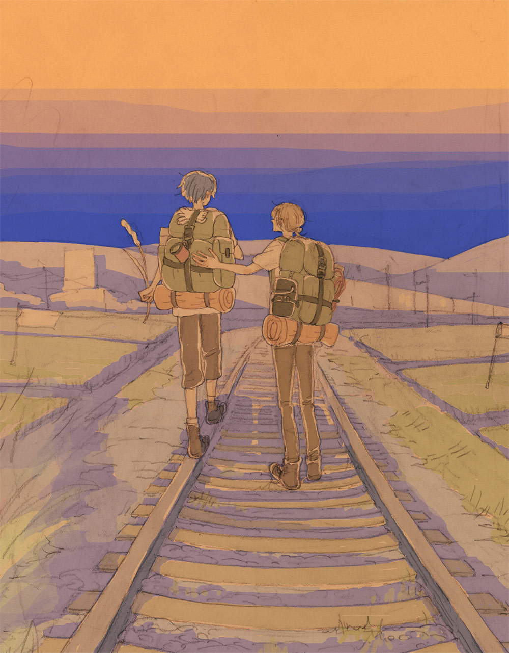またエンド6の絵!このまえ車がいいと思ってたけど、やっぱり徒歩もいいな。荷物が多くなって大変だけど…。スタンドバイミー大好きだから線路沿いに行ってほしい。