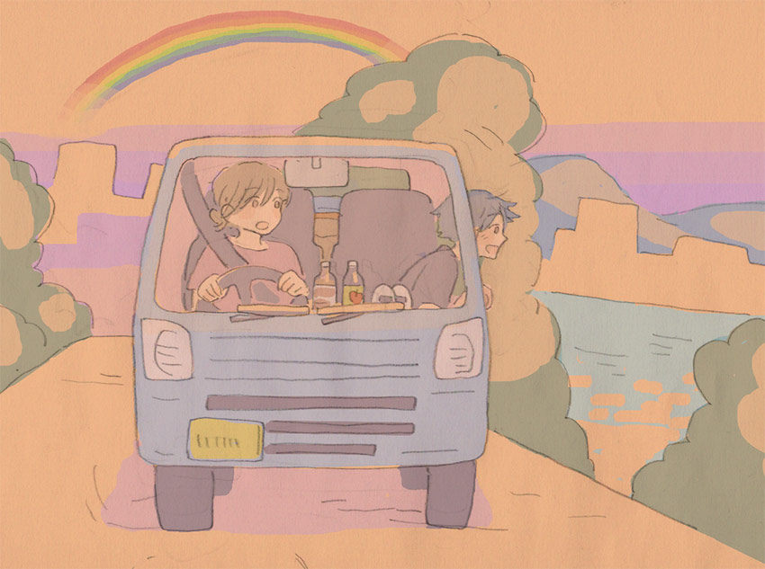 2人で旅に出てほしいけど、交通機関がないから車で行こう!運転はたぶんニシくんができる。そんでニシくんの地元に行って2人で田舎暮らししてもいいし、そのまま各地回ってもいいよね。でも畑とか好きそうだから定住かな~。