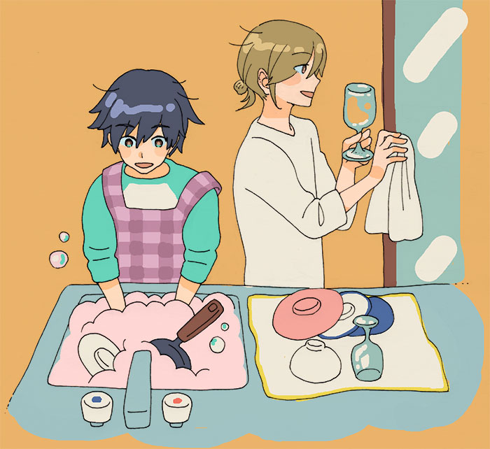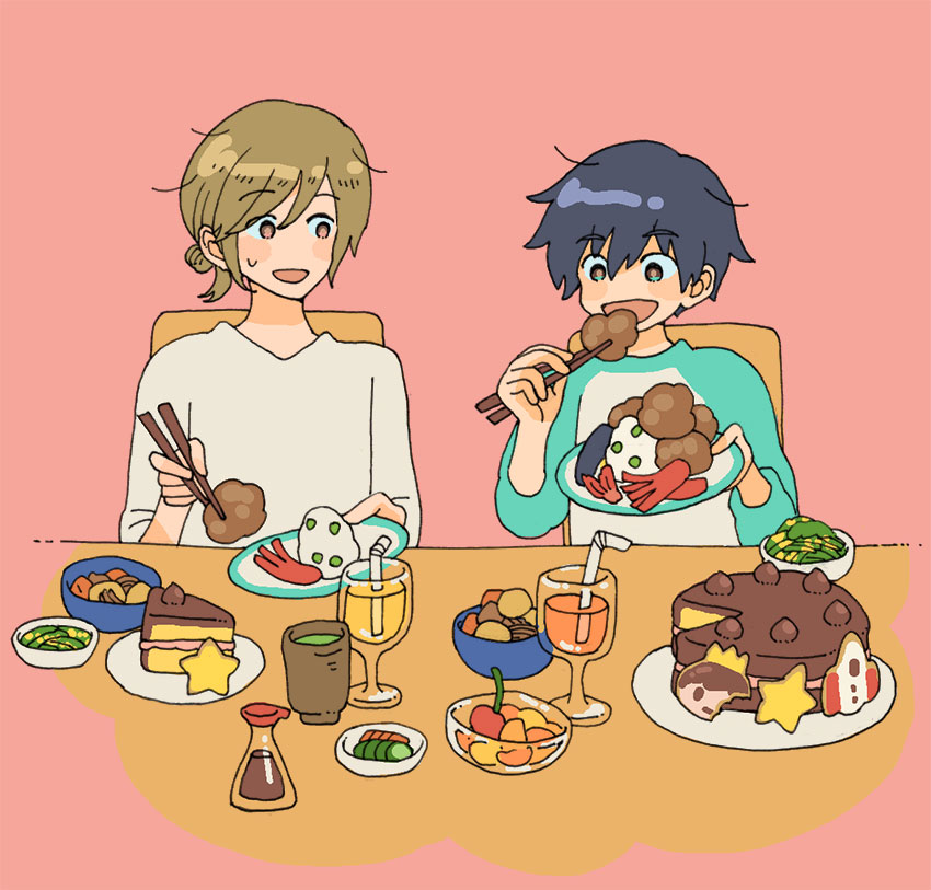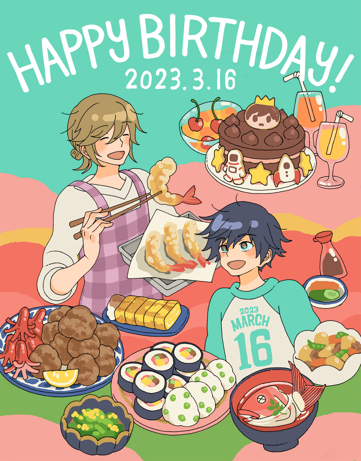 途中、これってお誕生日会じゃなくてお花見弁当かもと思ったけど、ヒガシくんはニシくんのお花だからヒガシくんの誕生日はほぼお花見!だからこれで大丈夫だな!って思ってそのままにした。