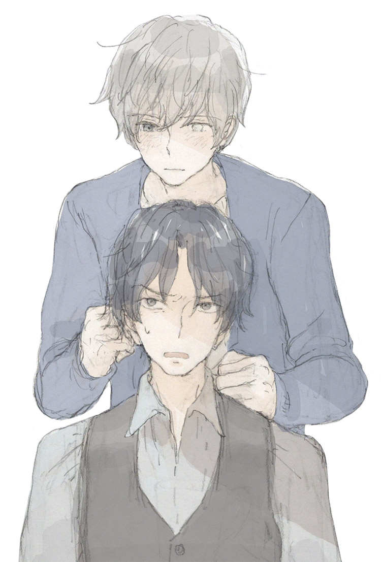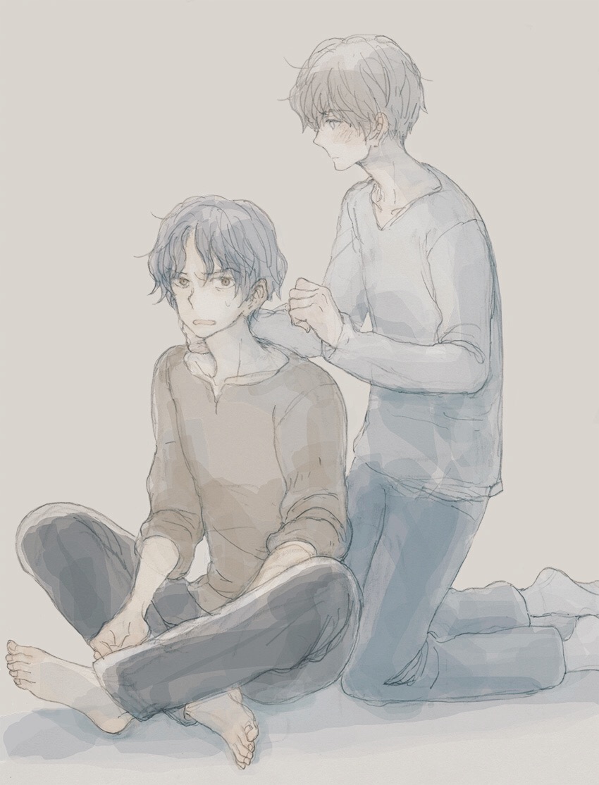 一来くんの誕生日に描いた、誕生日プレゼントに羅漢の肩たたきをさせてもらってる一来くんと、意味不明すぎてめっちゃ引いてる羅漢です。