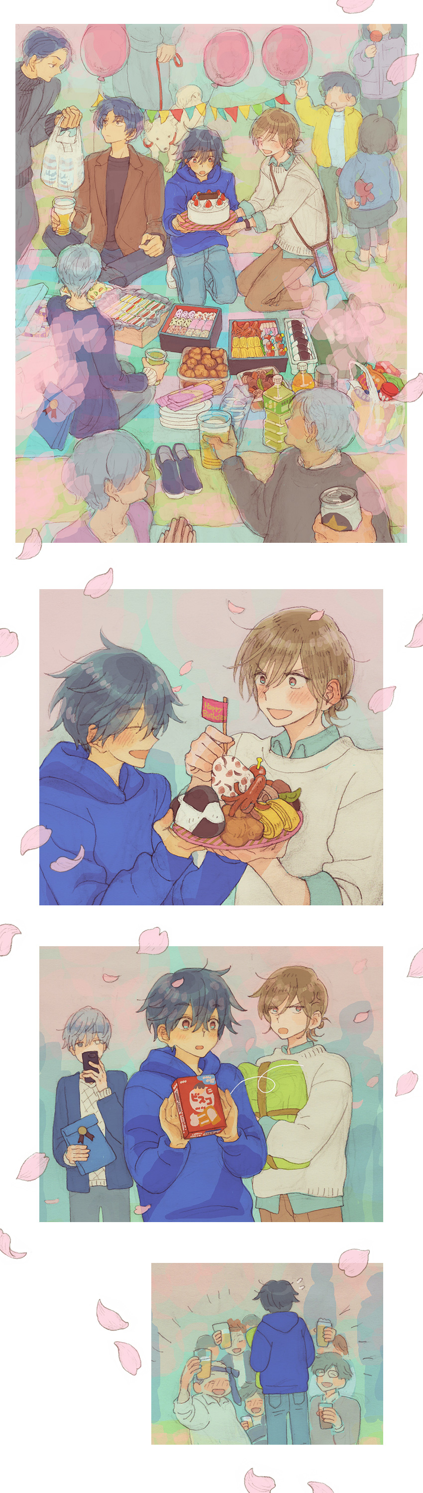 お花見誕生日パーティーでニシくん・工藤家はもちろん、周りの知らない人にもお祝いされてほしい!!っていう絵です。