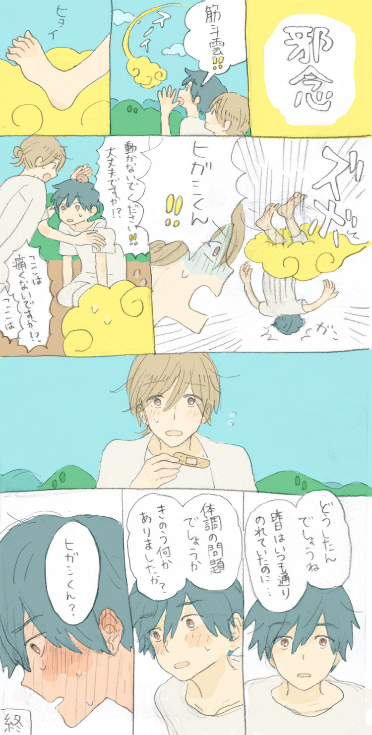 この下は、筋斗雲に乗れなくなっちゃうヒガシくんのゆるいまんがです