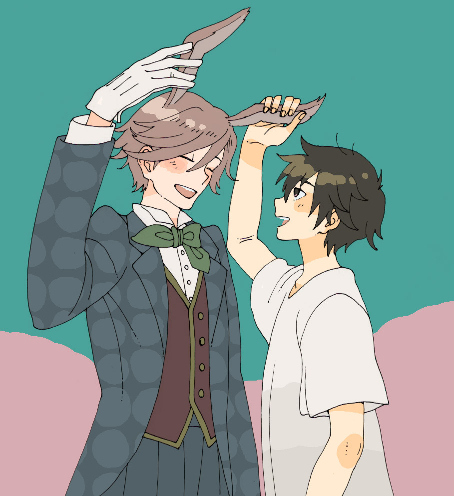 アリスイベントのうさ耳かわいくて描いた、コスプレでちょっと恥ずかしいけどヒガシくんが喜んでて嬉しいニシくん。