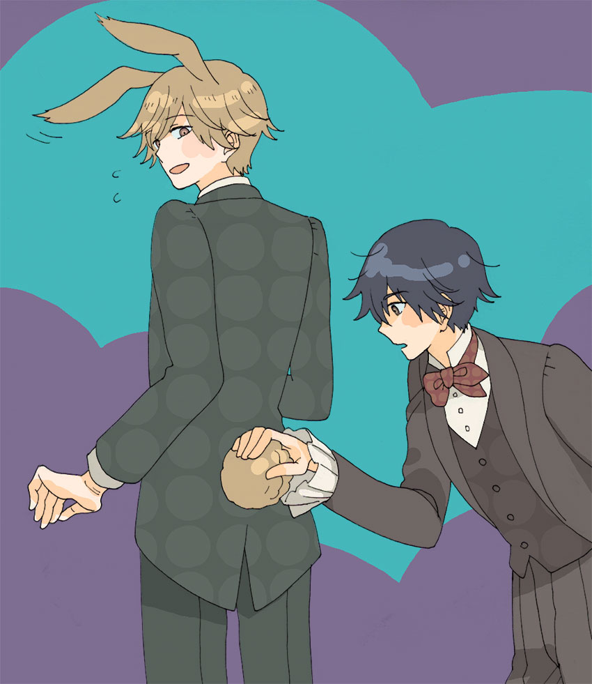 尻尾描いた!一見普通にかっこいいクラシックスーツに、さりげなくうさぎ尻尾が生えてるのかわいい~。しかもニシくんだけ!