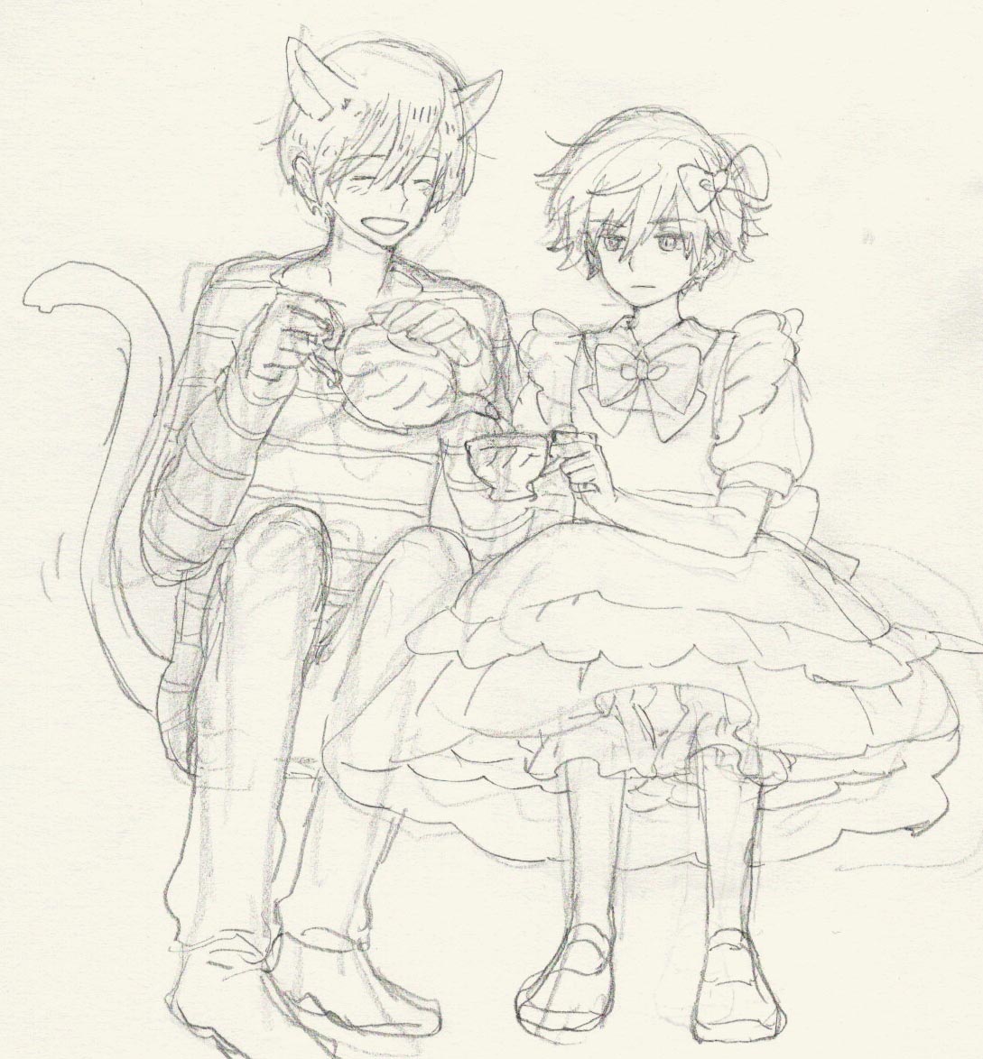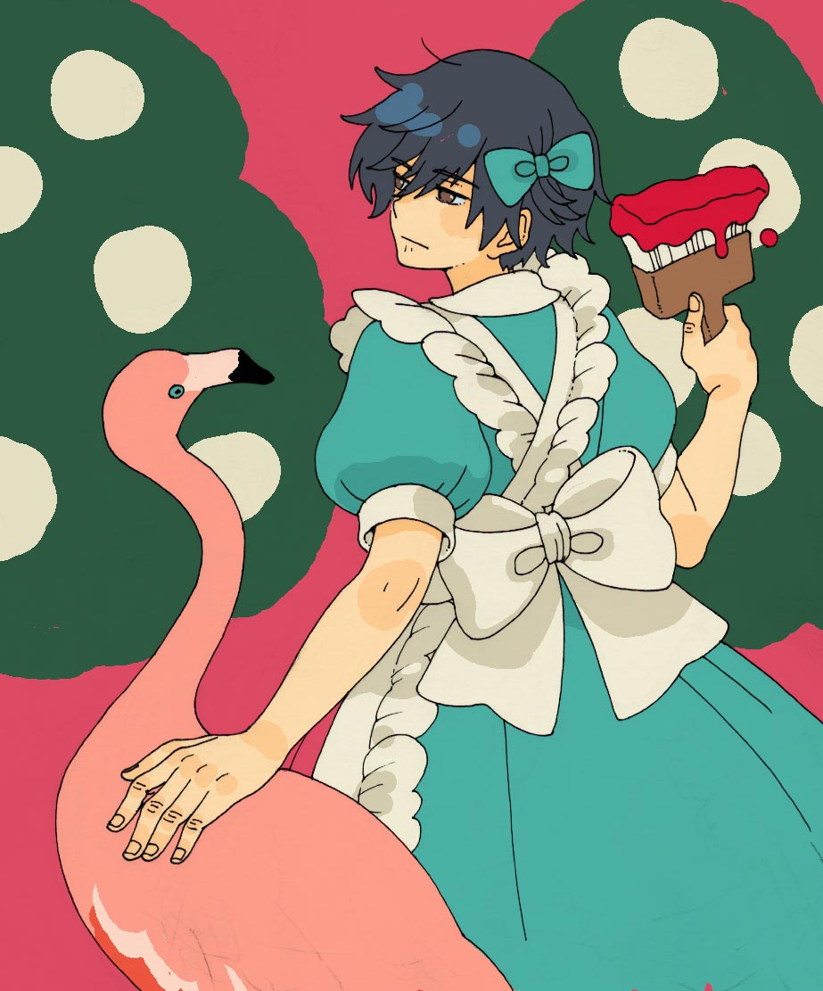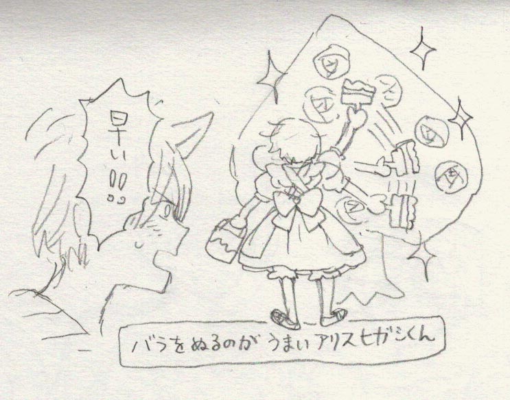メイドさんイベントの告知を見て、女装ありなの!?それならアリスも女装で良かったのでは!!?って描いた女装アリスのヒガシくん。