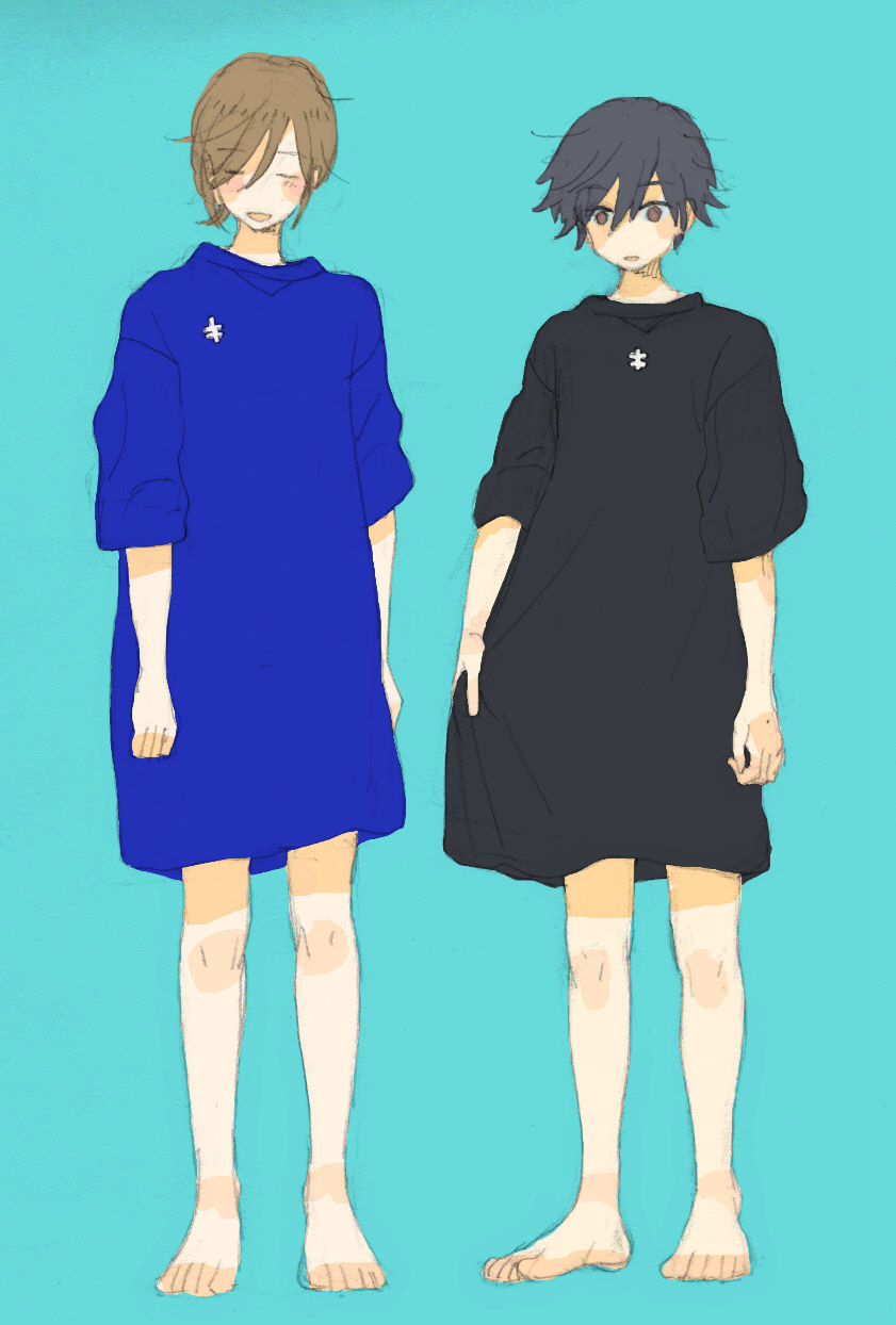そんな大きいかなって思ったけど膝まである!Tシャツワンピじゃん。ニシくん青も似合ってかわいいね。