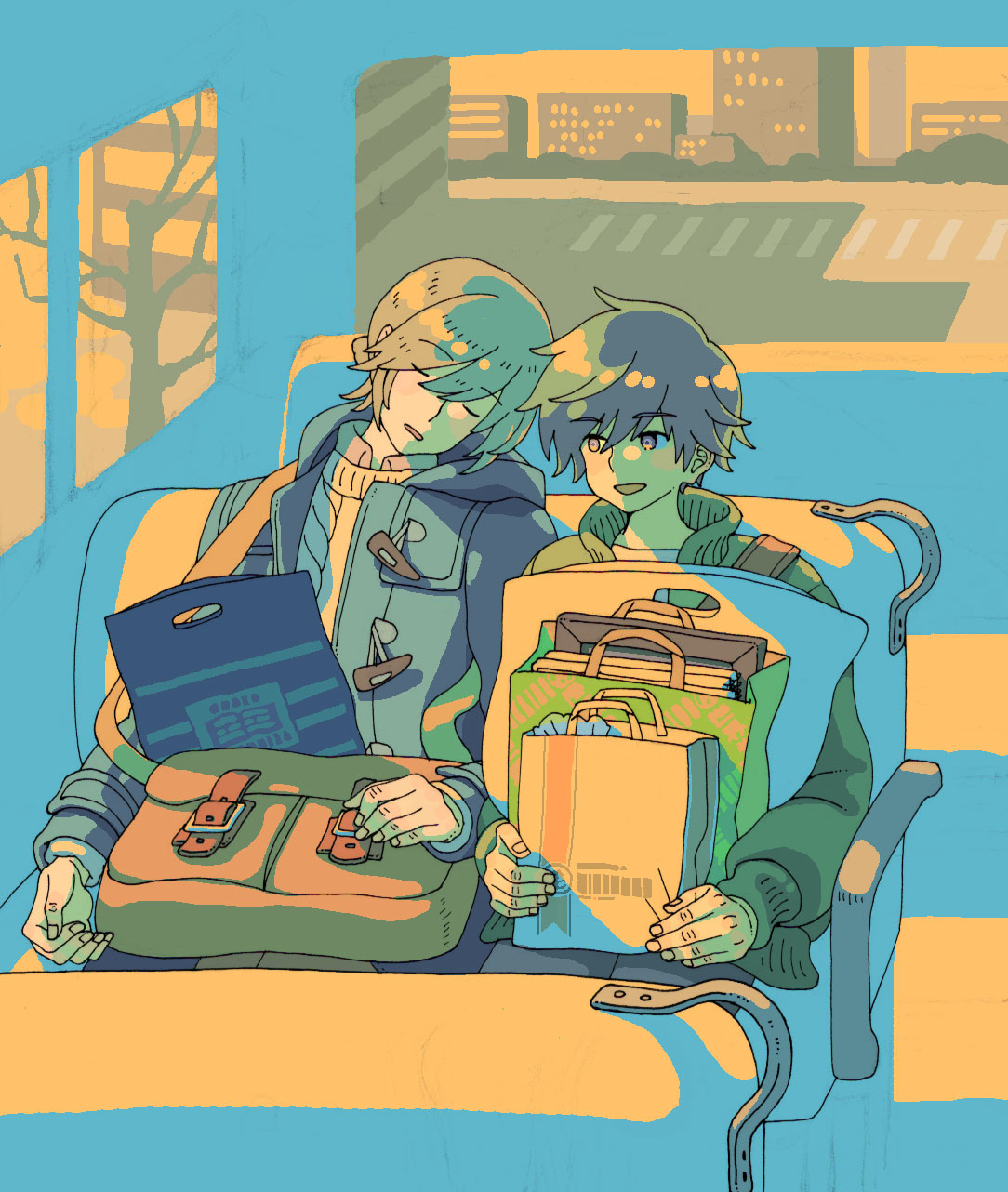 買い物で疲れて寝落ちしちゃったニシくんと、ニシくん寝てる…って思ってるヒガシくん。