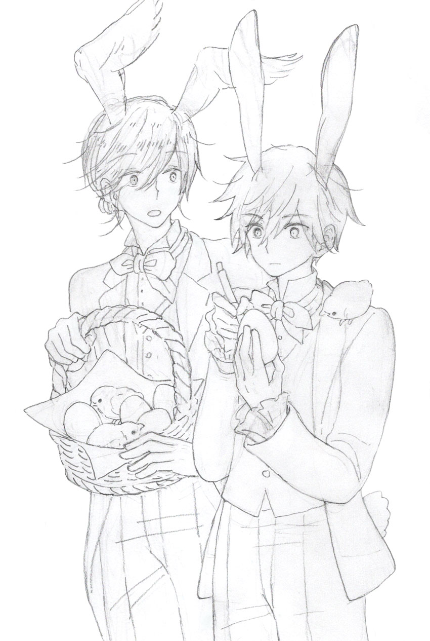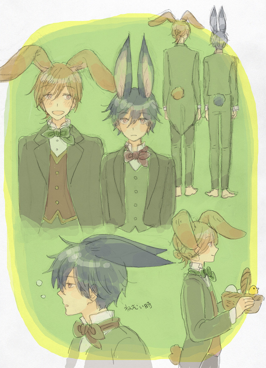 上の絵で、特にヒガシくんのうさ耳をちゃんと描かなかったことを後悔して描いた… ヒガシくんのうさ耳はピンと立っててほしい。 あとうさぎって眠いとき耳が寝るらしい めちゃかわ