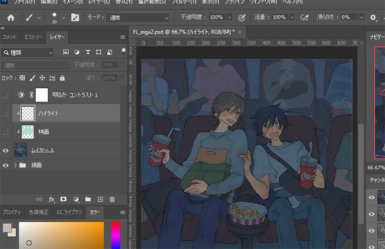 1)線画(アナログ)を取り込んで、気になる汚れとかを修正