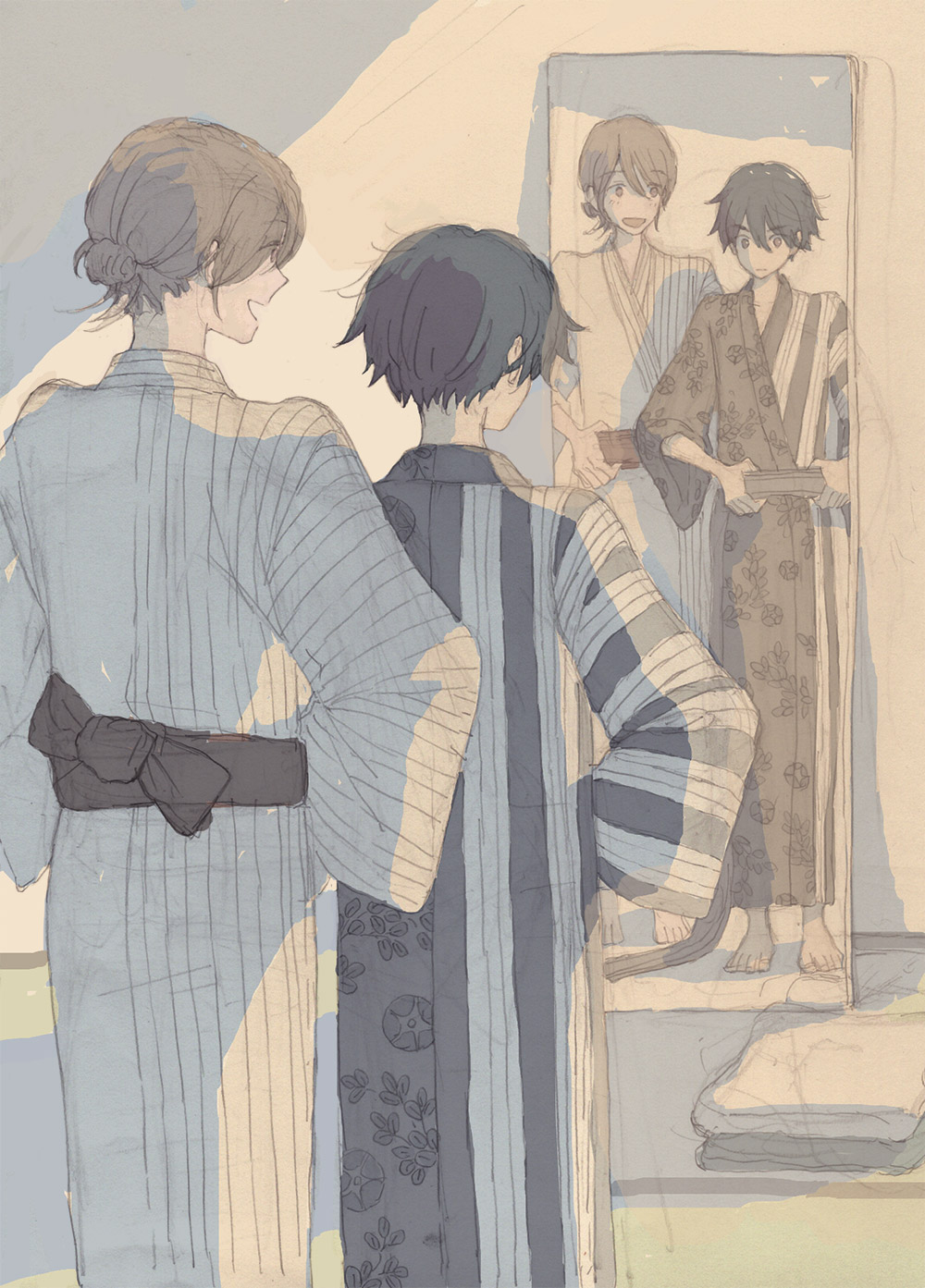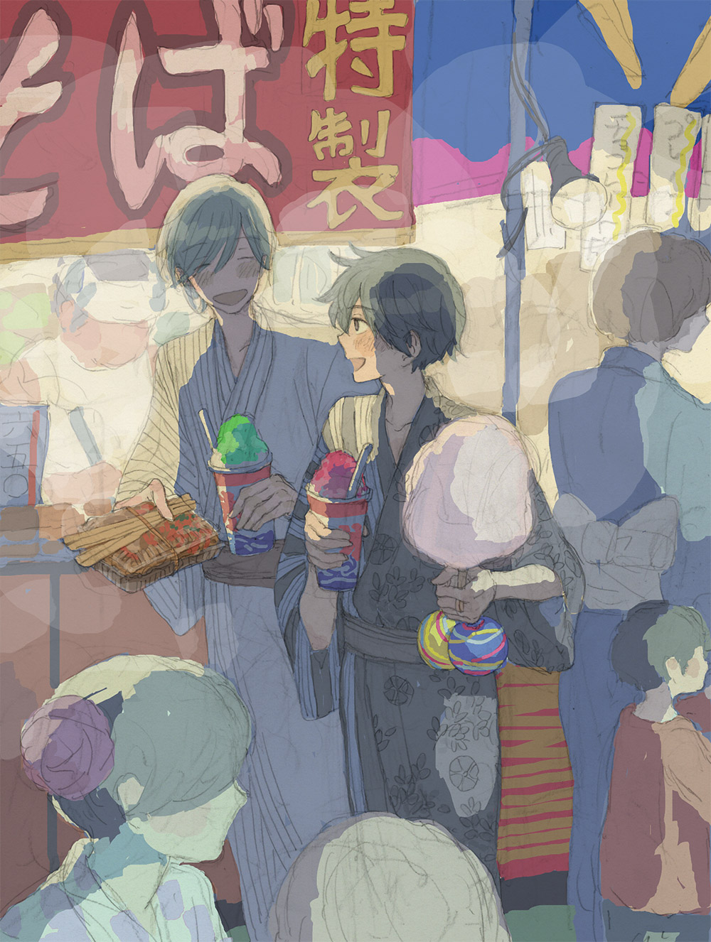 初浴衣で縁日で遊んでるニシくんとヒガシくん