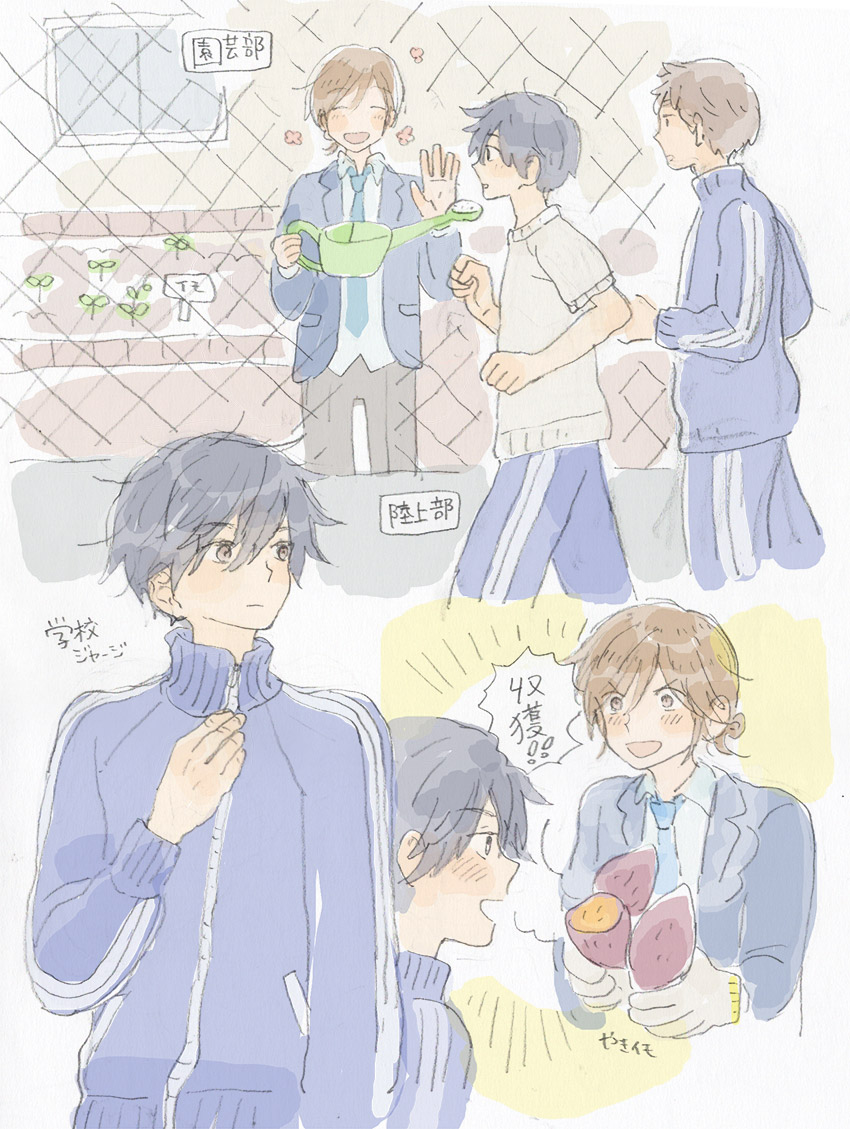 ヒガシくんは陸上部で、ニシくんは園芸部と将棋部の掛け持ちっていう設定です。