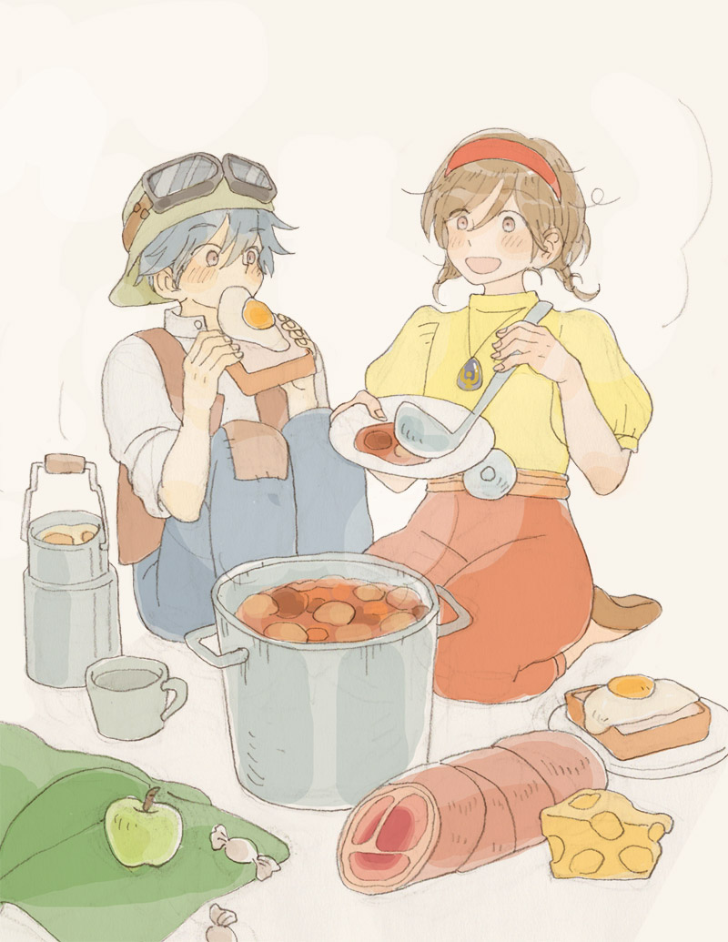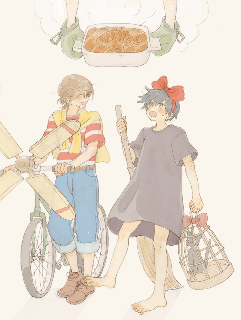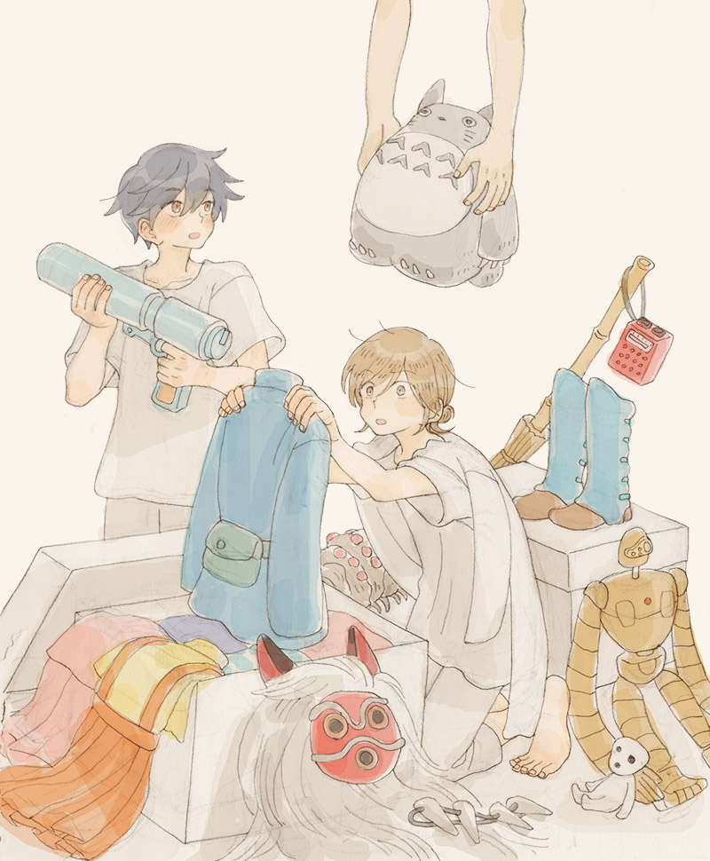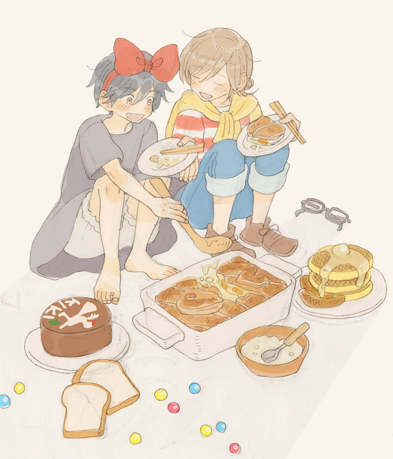 ラボにジブリアニメの衣装・小物がいっぱい降りてきて、2人でうまく作品を表現できたら該当のジブリ飯が降りてくるっていうルールで描いてた絵です!急に何を言ってるんだって感じだけど、一時期この設定がブームで…
