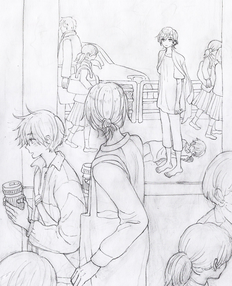 よくニシくんとヒガシくんの日常の絵を描いてるけど、ニシくんはもしラボから出てこういう生活を送ってても、本当は全部夢で、まだラボにいるんじゃないかって疑いながら過ごしてそう。