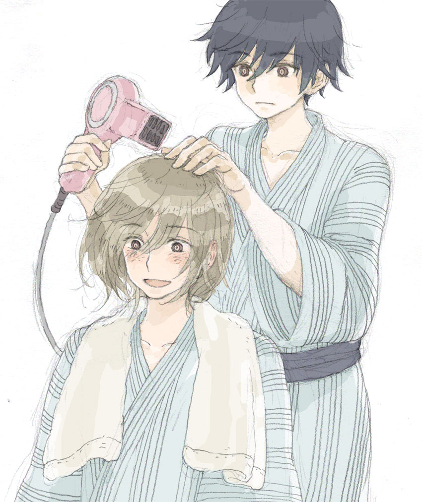 上のお返しにニシくんにドライヤーをかけてあげるヒガシくん。