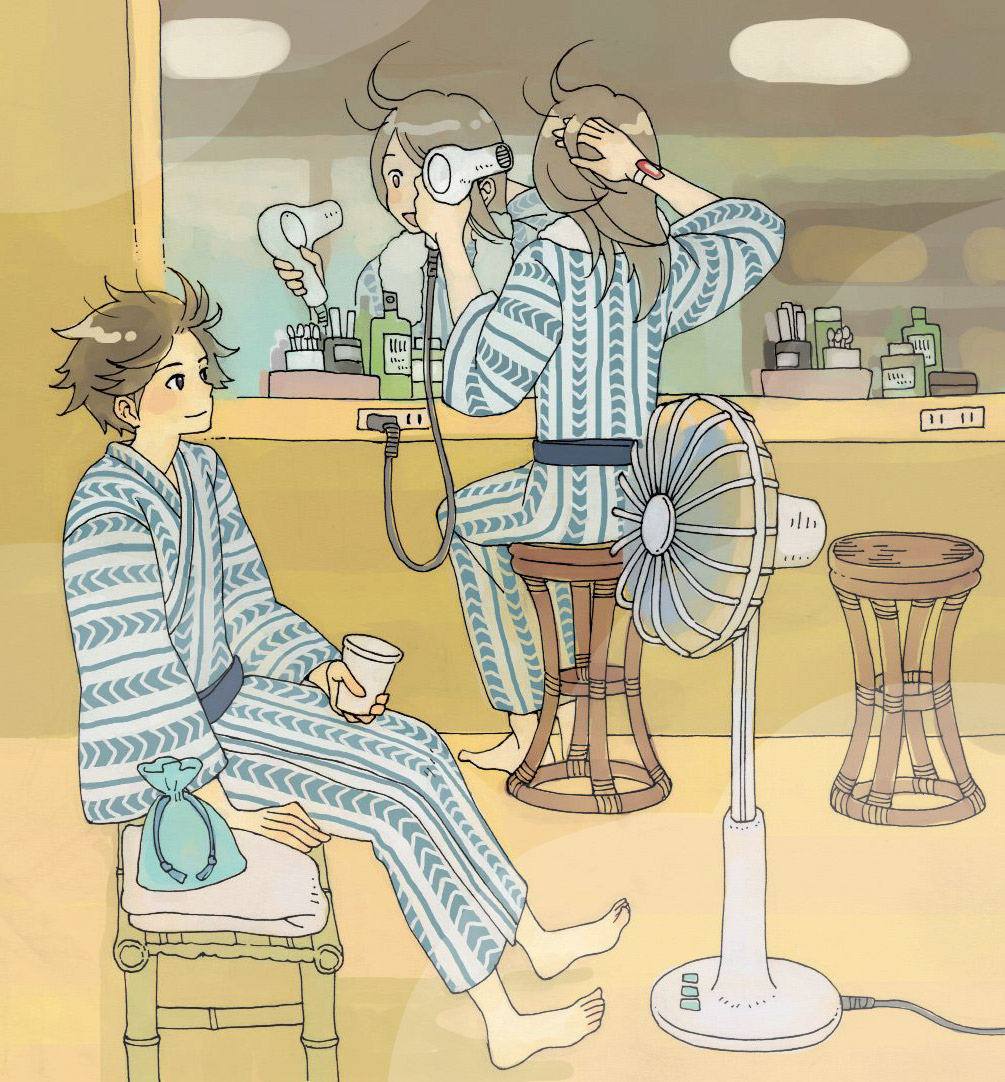 2人に楽しい温泉旅行に行ってほしい…っていう絵です。