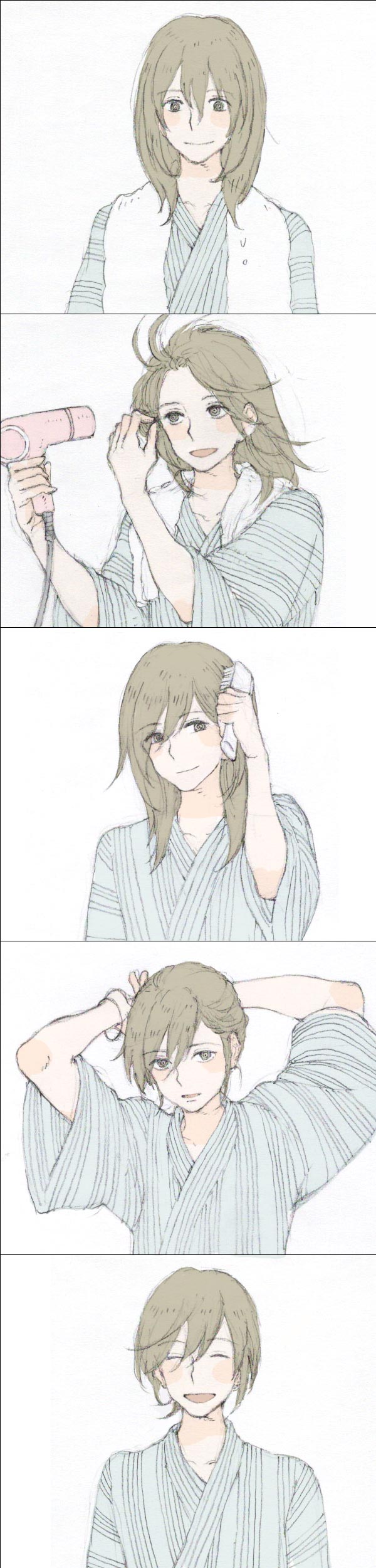 湯上りでドライヤーかけてるところ入れたくて追加で描いたんだけど、ニシくんの髪の長さとか髪型をめっちゃ勘違いしててすごい直したい。。。