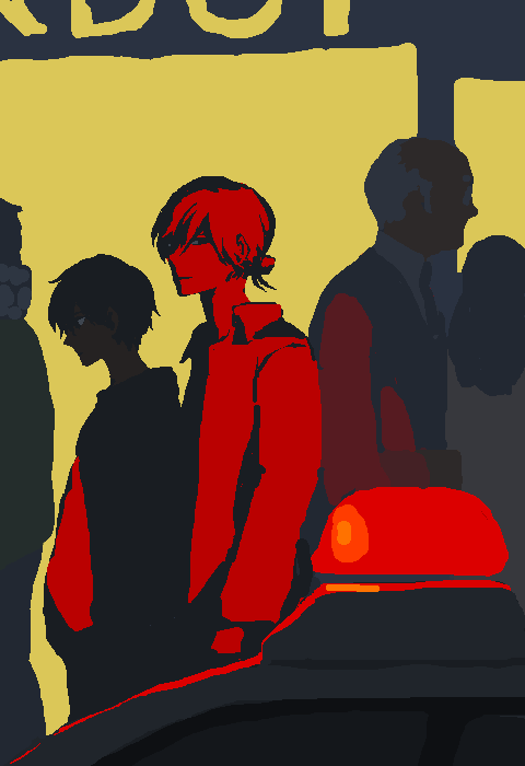 パトカーに照らされる