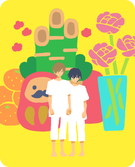 これは年賀状を作りながら、ニシくんとヒガシくんを描き込んで遊んでいたやつです。