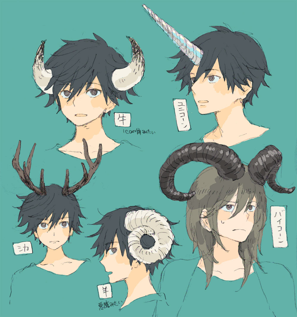 ケモ耳とか角とかの色物系はニシくんが担当っぽいけど、ヒガシくんにも角ほしいな~って描いてた落書きです。