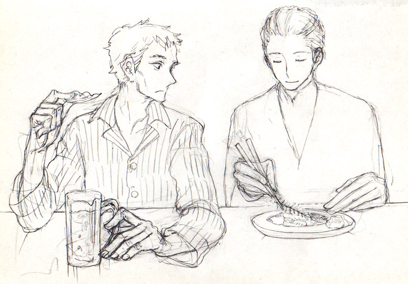 なんとなくビール描いたけど、あの世界はアルコールなさそう。