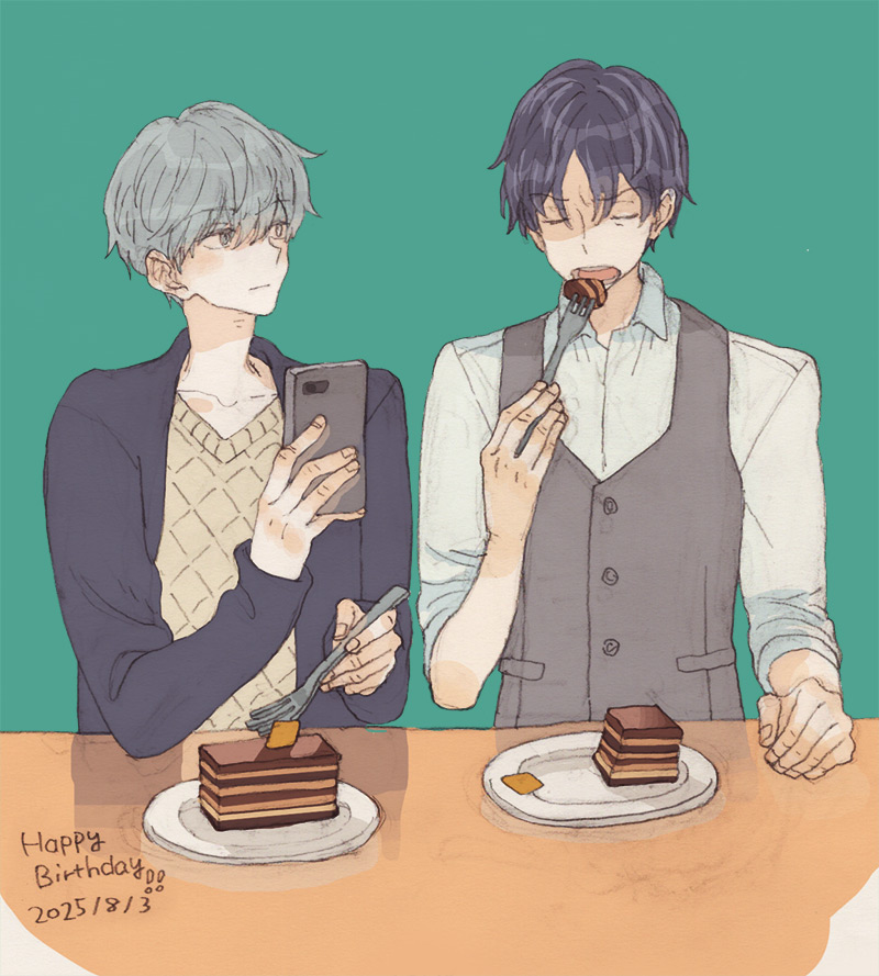 羅漢がフン…たまにはな…ってケーキを買ってきてくれた設定の絵です。羅漢チョコ好きっぽかったから、買うならオペラかなと思って。でも羅漢が買ってくるケーキは高くて小さいやつだと思うから、大きく描いてしまって失敗したな~~って思った。ケーキって大きいと安そうに見えるよね。。