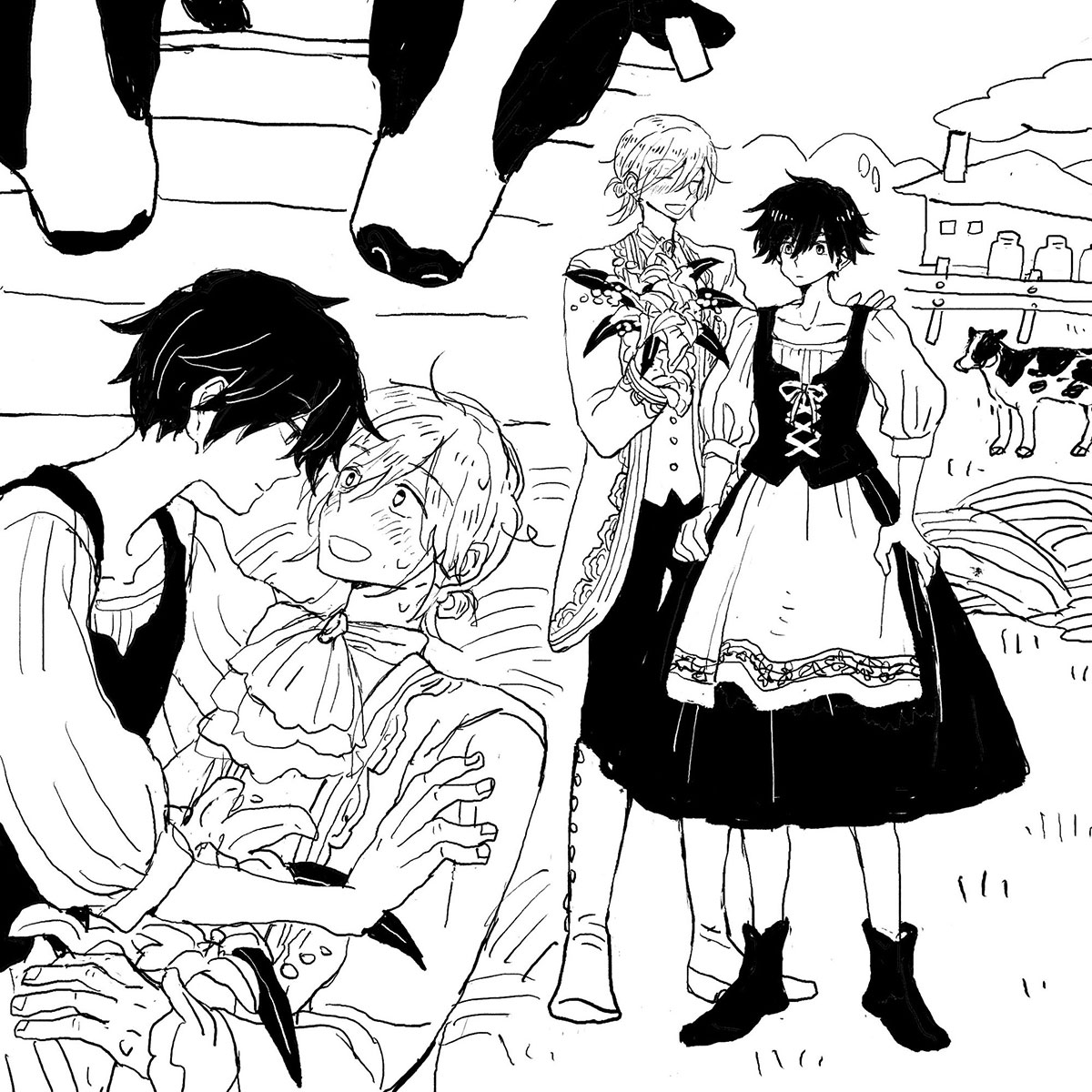 貴族ニシくんが、素朴な村娘だと思っていたヒガシくん(イケメン)と牛舎で変な感じになって、えっこんなところで…!?そんな…牛が見てる…みたいな。。