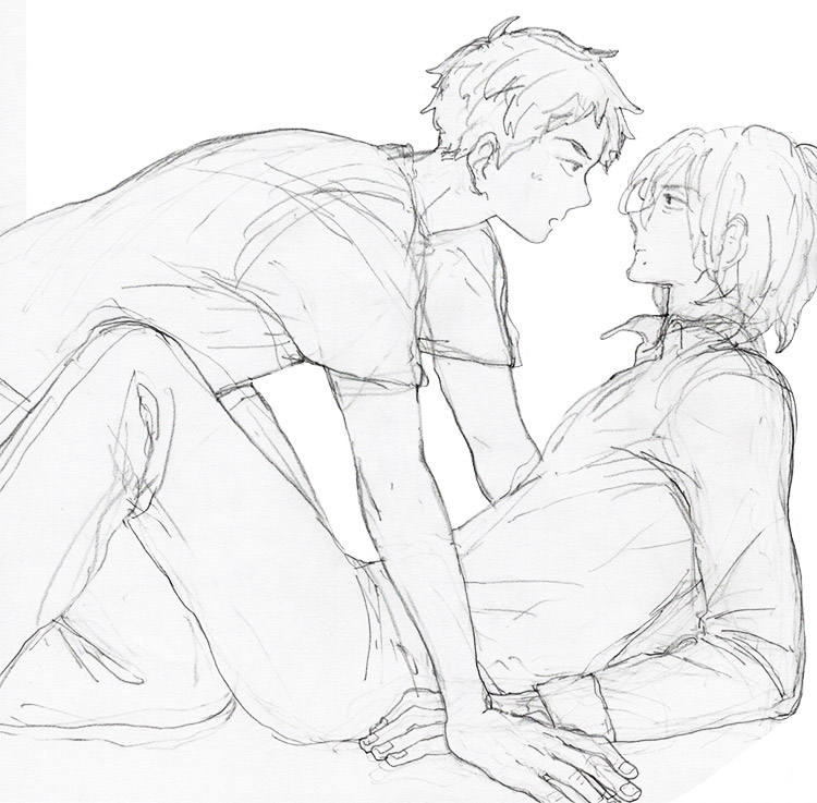 健人みたいな、骨太で肉もしっかりついてるキャラ普段あんま描かないから難しい。最初ごつい!って思ったけどかわいかった~。